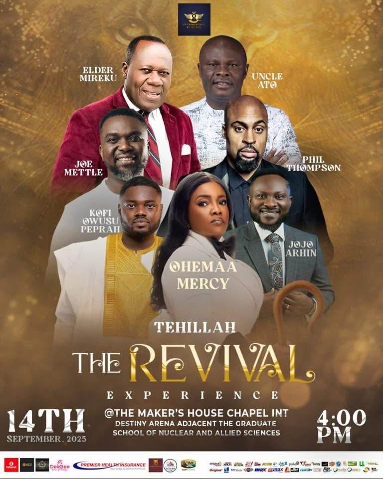 Ohemaa Mercy’s Tehillah Experience 2025 will be held on Sunday, September 14, 2025, at 4 p.m. at the Maker’s House Chapel International in Accra. The event is free to attend.